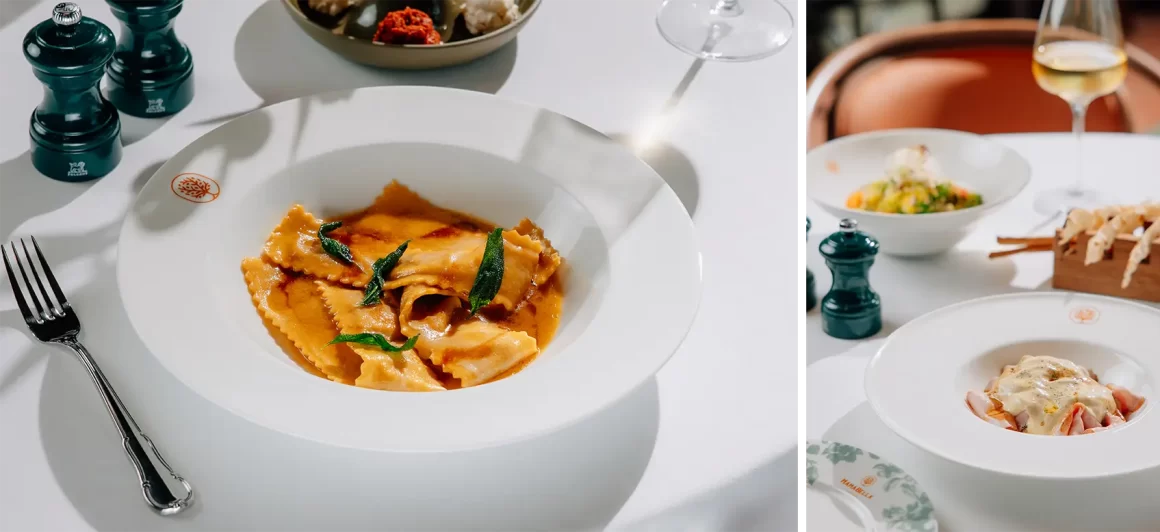 Mamabella’s culinary offering is as heartfelt as it is ambitious. The menu, carefully crafted by Chef Alessandro, celebrates Italy’s timeless traditions while embracing the sophistication of Dubai’s dining scene. Guests are welcomed with a freshly baked Sicilian bread basket, accompanied by a striking olive branch tree adorned with olives, served alongside sundried tomato paste and Chef Alessandro’s homemade ricotta. From there, the journey unfolds across Italy’s coastal and inland flavors: