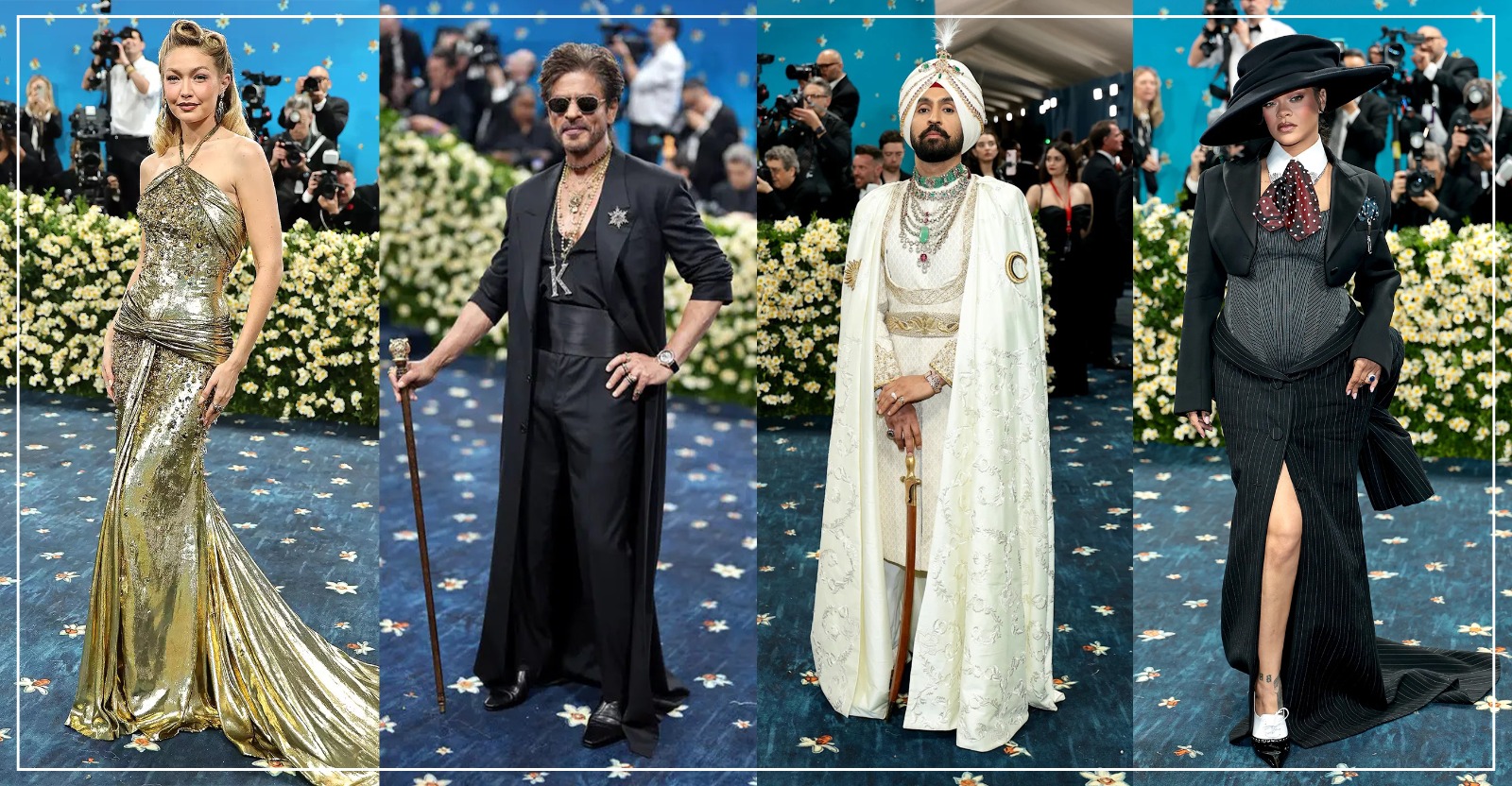 Shah Rukh Khan made a regal Met Gala 2025 debut in a custom Sabyasachi black ensemble, complete with layered diamond necklaces, a ‘K’ pendant, and a jeweled Bengal Tiger cane, marking his grand entry into the prestigious fashion event.